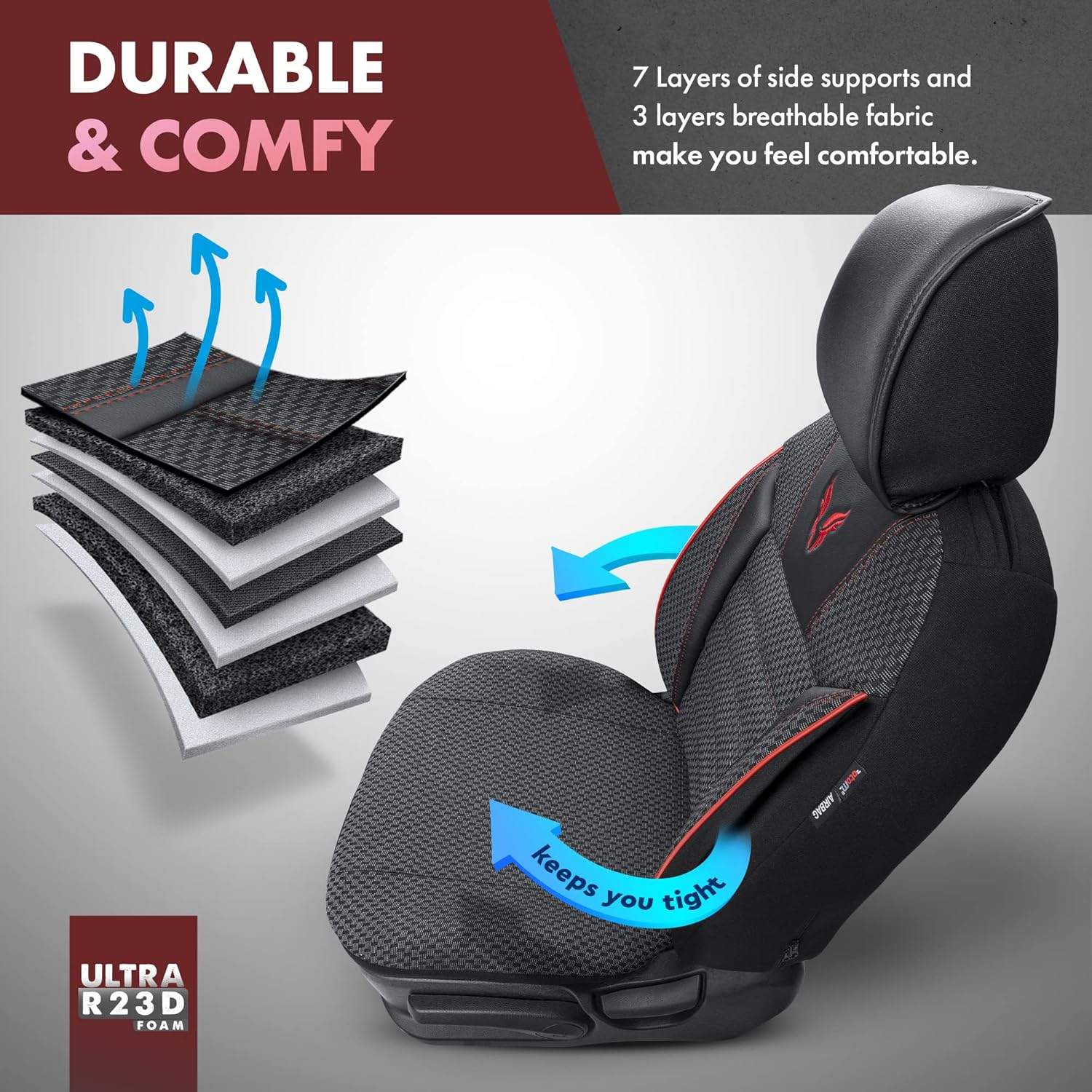 CAPAS DE ESTOFOS UNIVERSAIS "TORO" PRETA/VERM - QUALIDADE PREMIUM