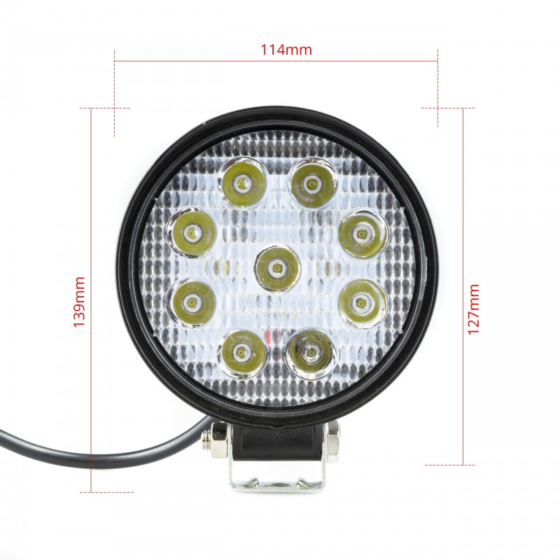 FAROL DE TRABALHO EM LED REDONDO, 9 LEDS 27W, 9-32V
