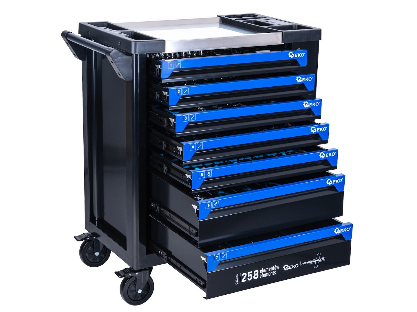 CARRO DE FERRAMENTAS COM 7 GAVETAS E 258 PEÇAS